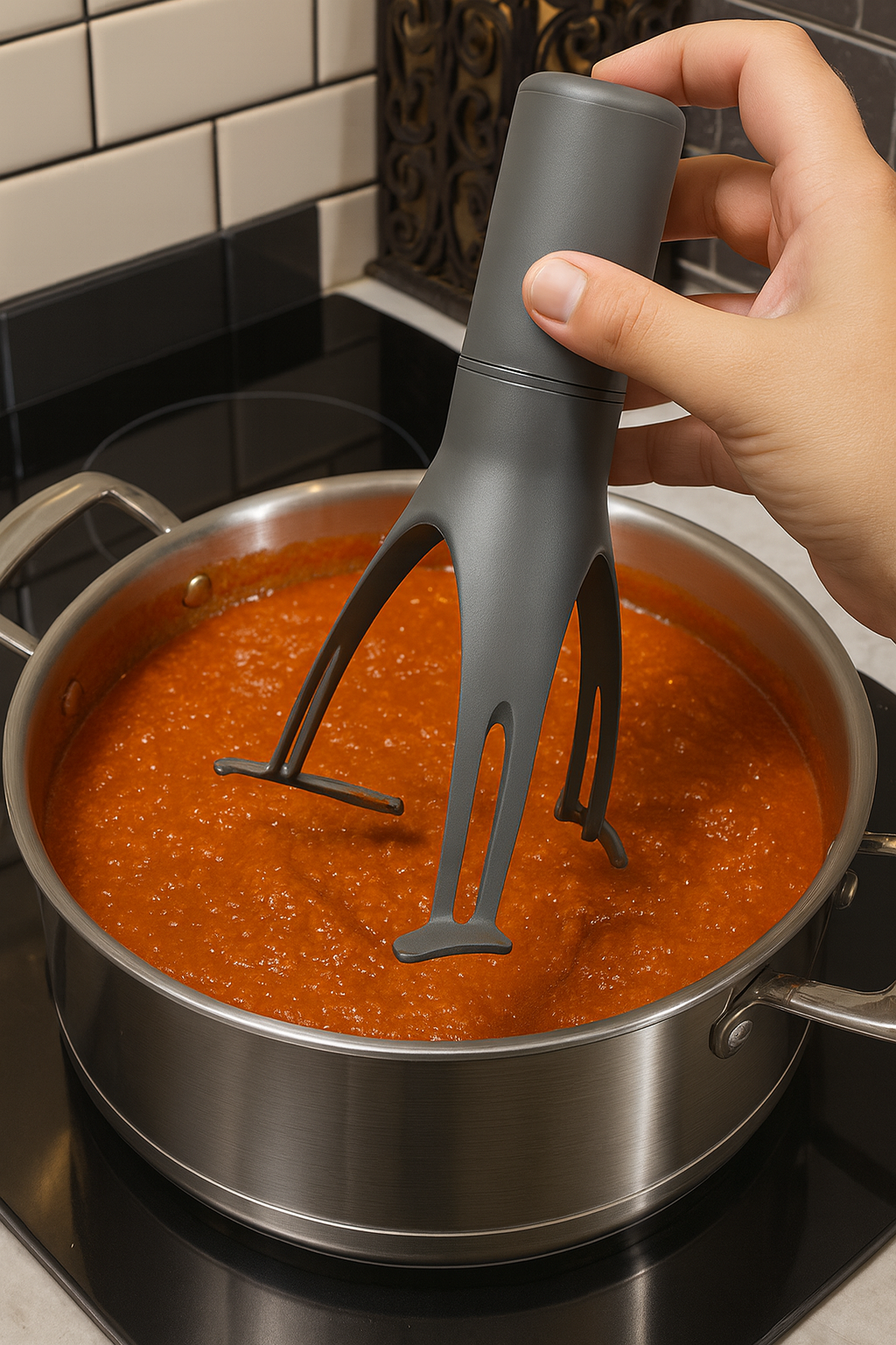 Automatyczne mieszadło do garnka – trójkątna ubijaczka na baterie